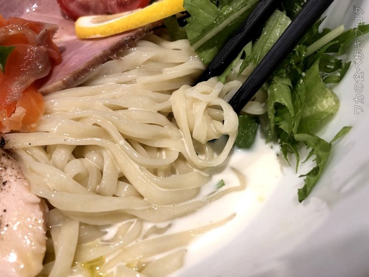 コシのある麺、冷たいクリームスープはあっさりと軽め、