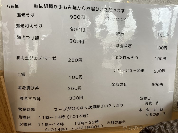 月曜・火曜だけの海老そばを食べに行ってきました。