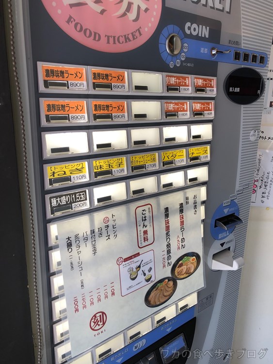 食券は味噌ラーメン、叉焼麺の2種類、あとトッピング・・・