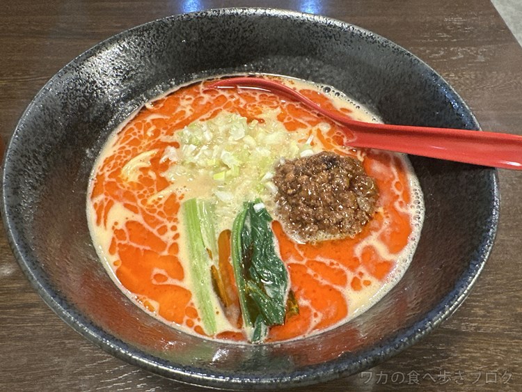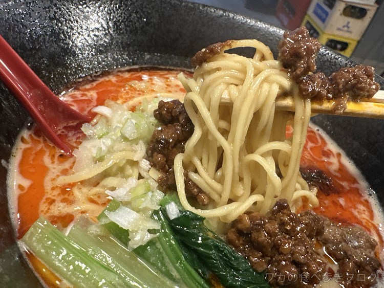 肉味噌の乗った坦々麺、まろやかに胡麻の風味が広がって