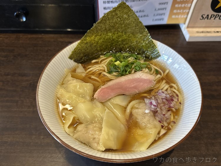 柔らかい鴨肉と、プリッとしたワンタン、