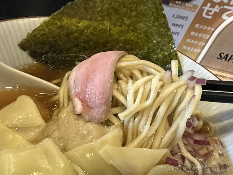 ワンタンの具は肉肉しくギュッとした感じ、これも鴨肉みたい