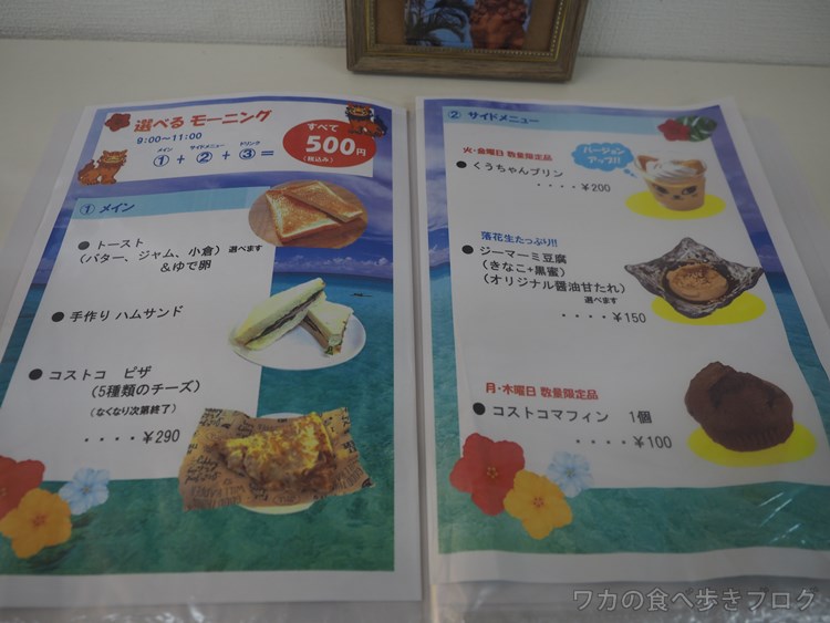 モーニングは500円で、メインやサイドメニュー、ドリンクをチョイス。
