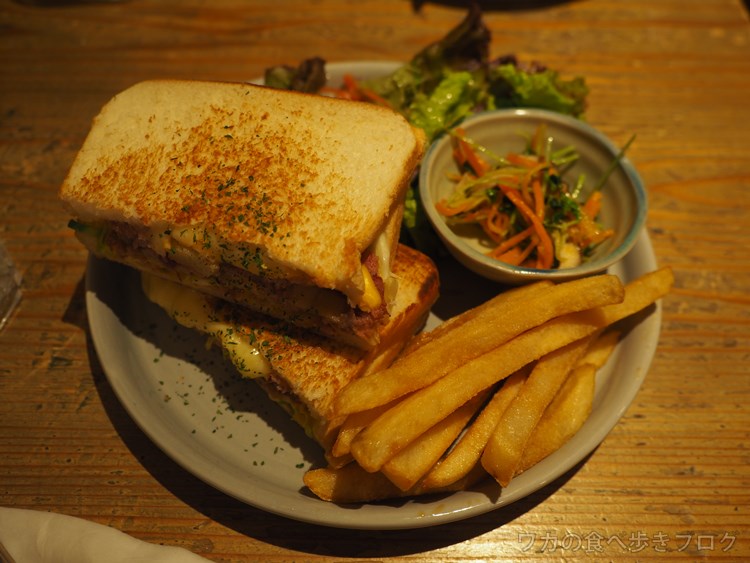 ホットサンドとサラダ、1品のワンプレートのセット1000円がメイン