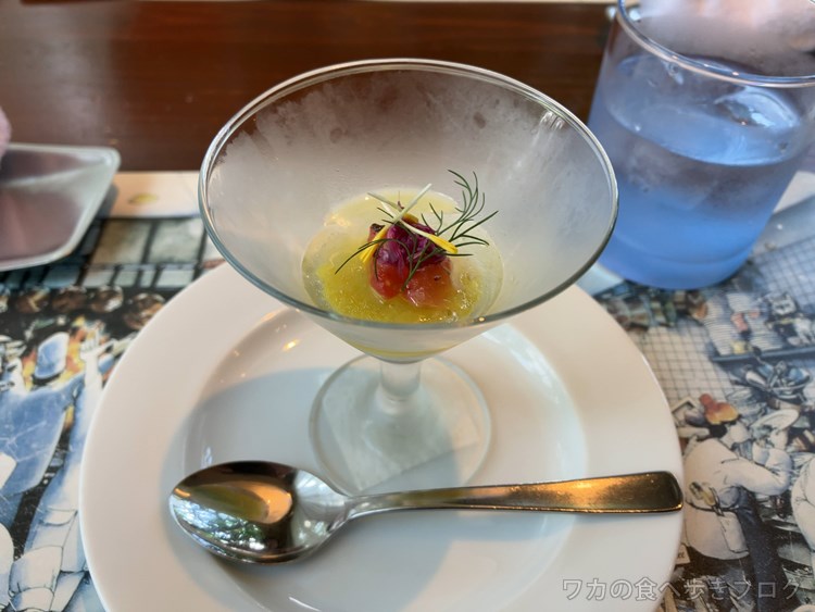 レモンタイム風味の泡が別添えになってて、混ぜて頂きます。