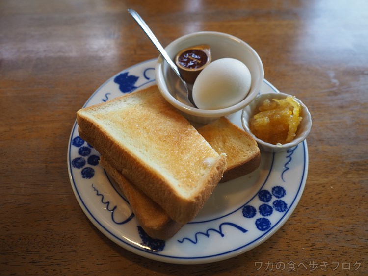 バタートースト2枚に自家製マーマレードとゆでたまご。