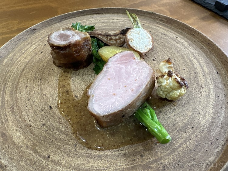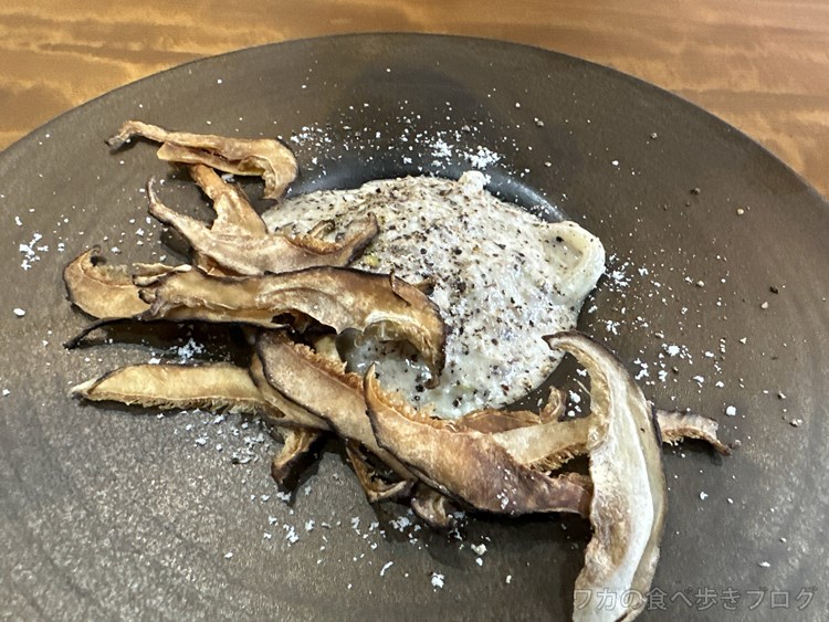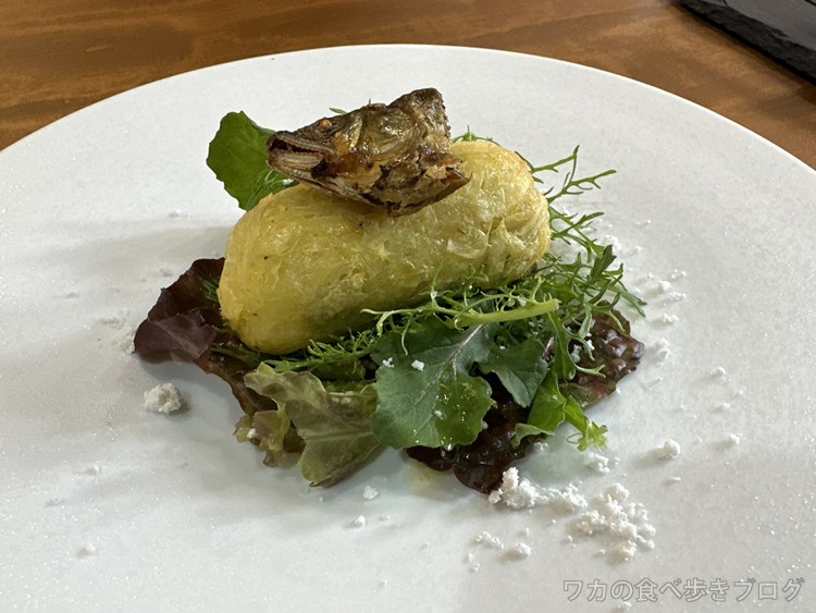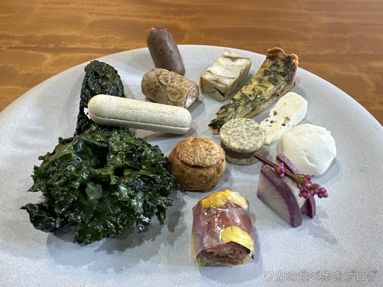 ヤギのチーズ、富山のカマス、ケールのチップス、キッシュ