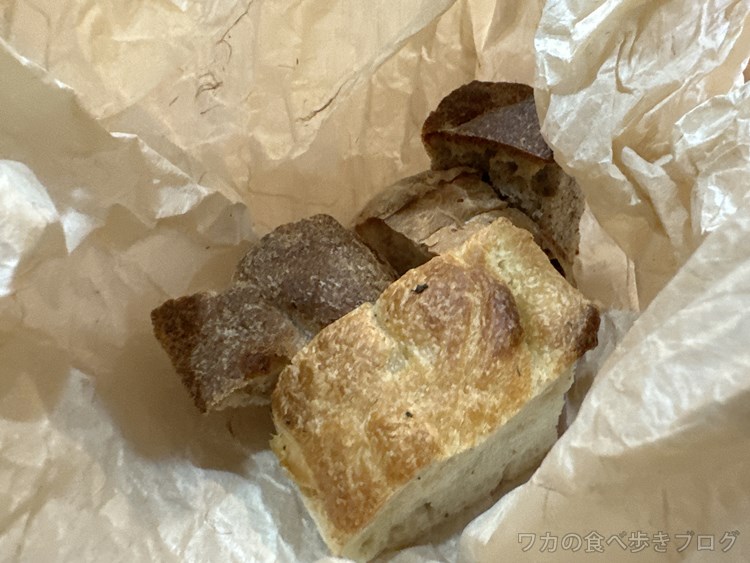 パンは4種類、伝統工芸か何かの和紙に包まれてる