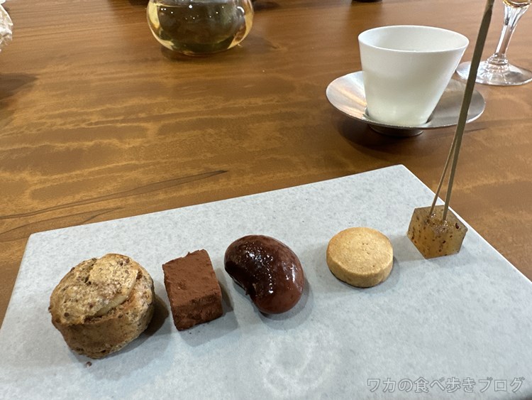 えごまのショコラとか、キウイのペクチンで固めたのとか、えごまシューとか、はなまめのコンポートとか、ちょっとうろ覚え・・・