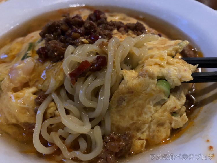 冷麺だけど、ピリ辛えび玉が乗ってて、あんかけされてて、ミンチ乗ってる(・∀・)