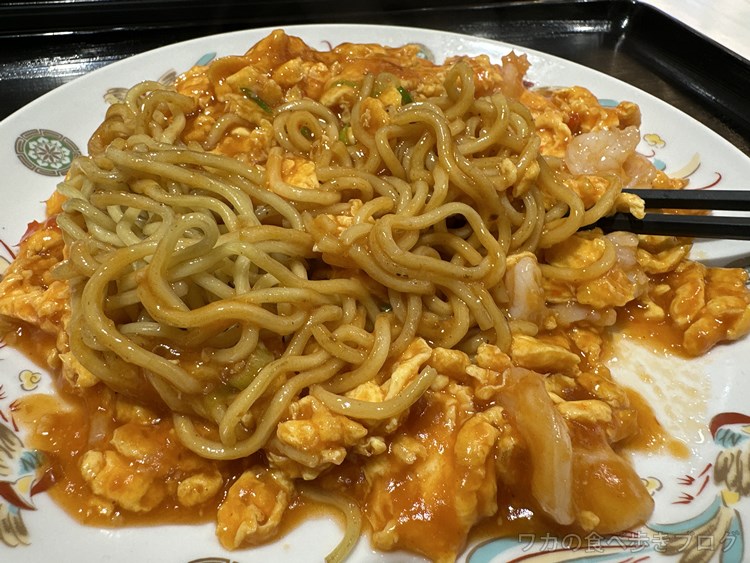 焼きそば好きなので、海老チリあんかけ焼きそばにしましたw