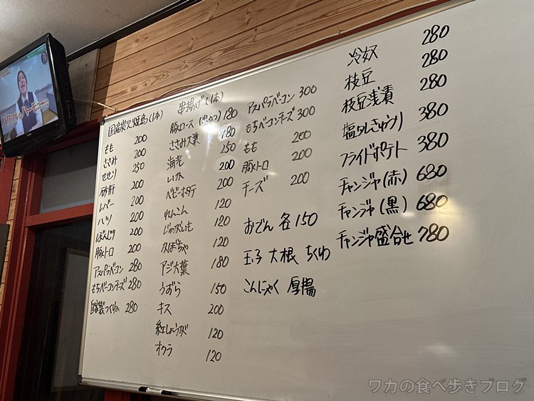 焼鳥、串揚げとかがメインで書いてあるけど、