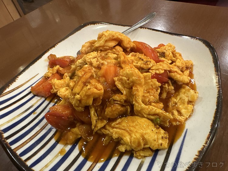 甘酸っぱいトマトの旨みが馴染んだタレ、玉子たっぷり旨い♪