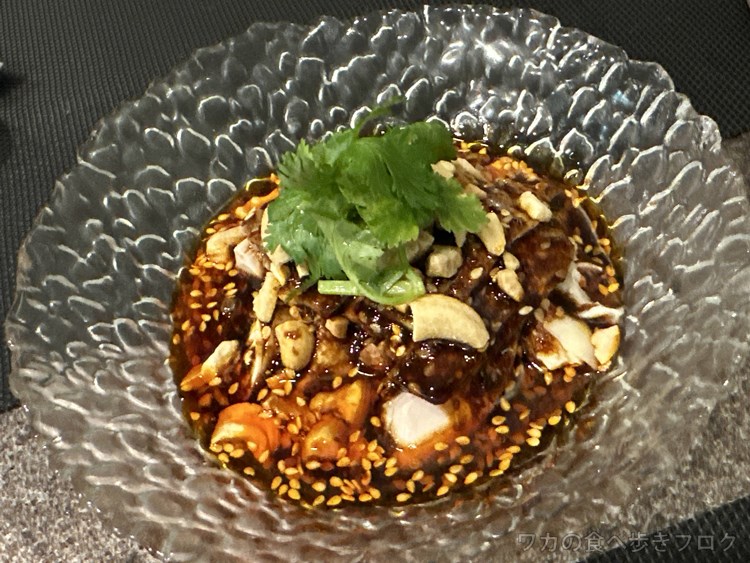 しっと~りした鶏肉にピリ辛コクうまなタレと、ナッツがたっぷり旨い♪