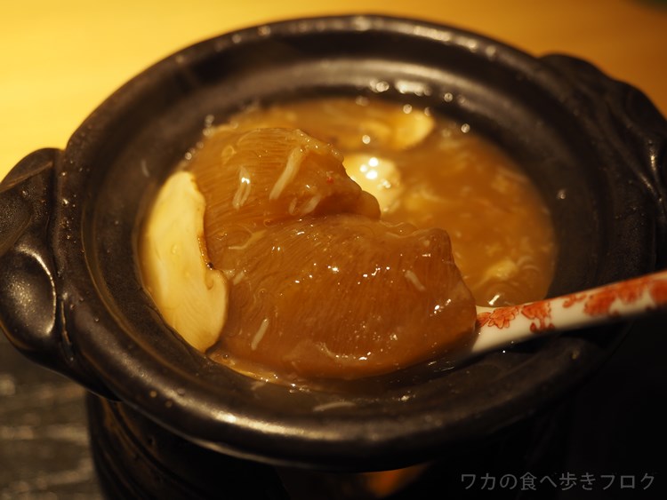 大きなフカヒレをカットした方が食べ応えがあって好き、というシェフの考えが・・・