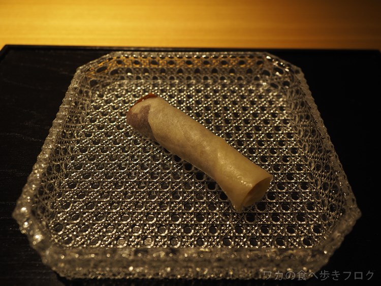 皮に付いた肉を徹底的に取って、皮だけの旨みを巻く。