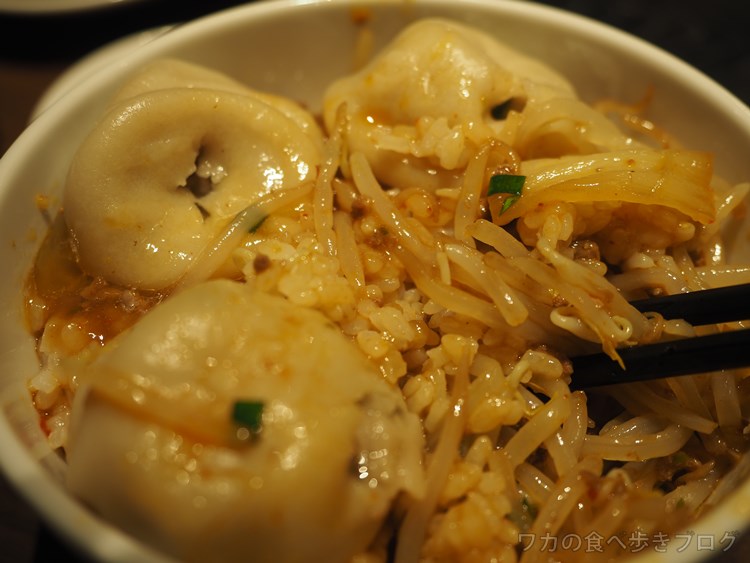 ピリ辛な台湾もやしと肉汁、餃子が混ざって(゚∀゚)うんま~ぃ