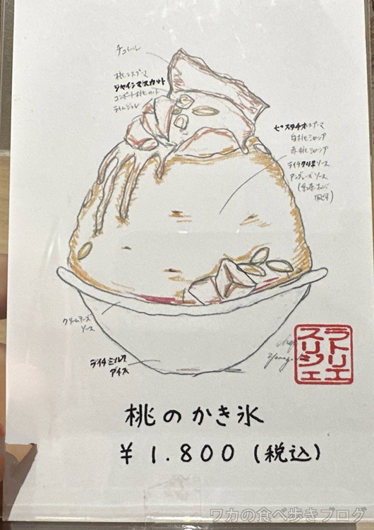 あれや、黄桃ソースが氷と馴染んでなくて一部素氷、