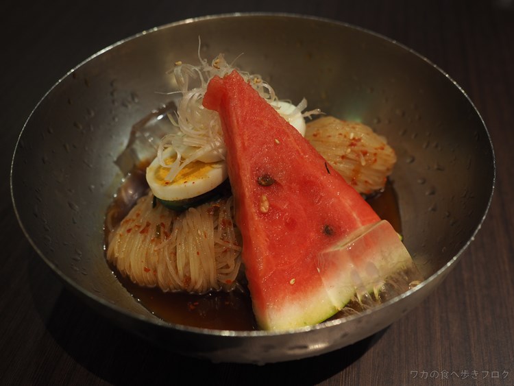 麺は細くコシがある、そば粉を使った冷麺で食感良く食べやすい気が♪