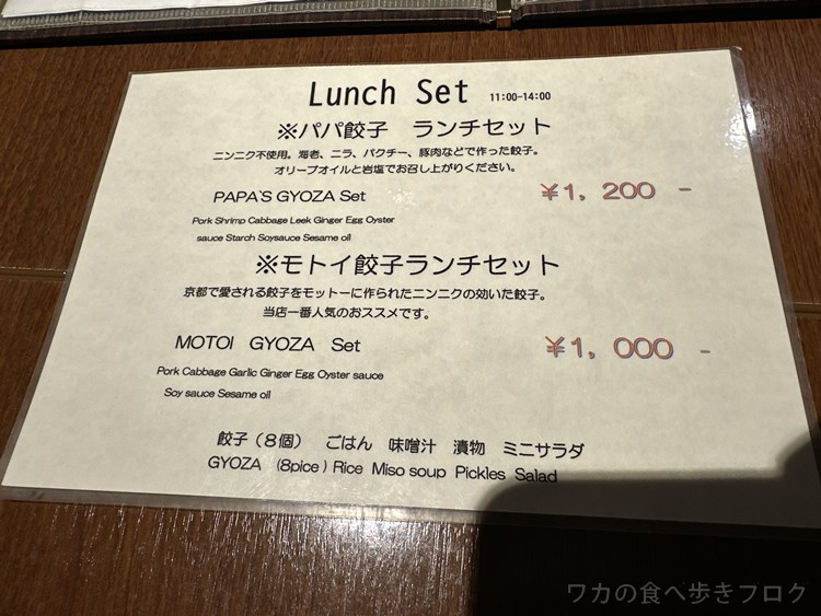 お昼はパパギョウザ、モトイギョウザ、野菜ギョウザだけあるみたい