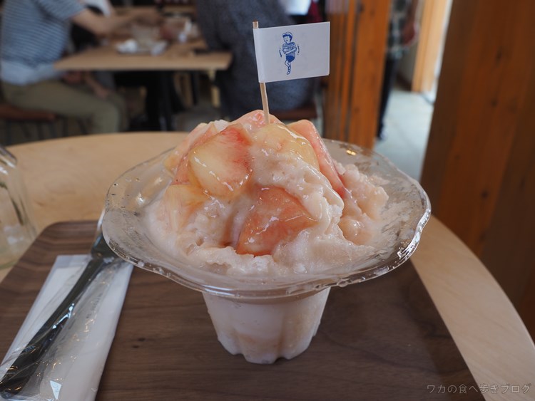 桃は生の桃でたっぷりゴロゴロ、甘みはまだ控えめであっさりとしてました(・∀・)