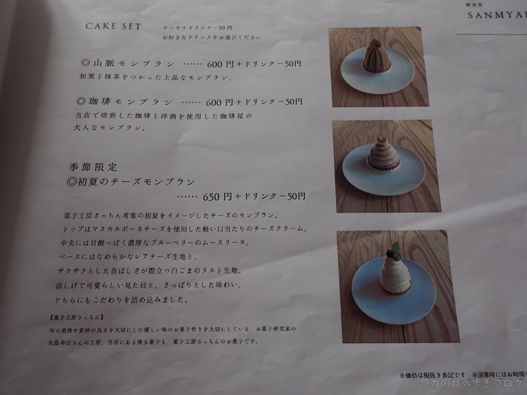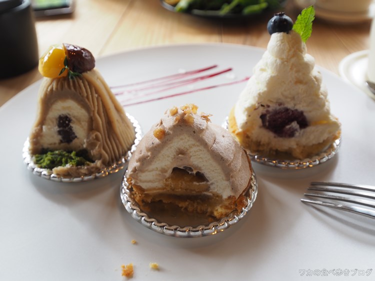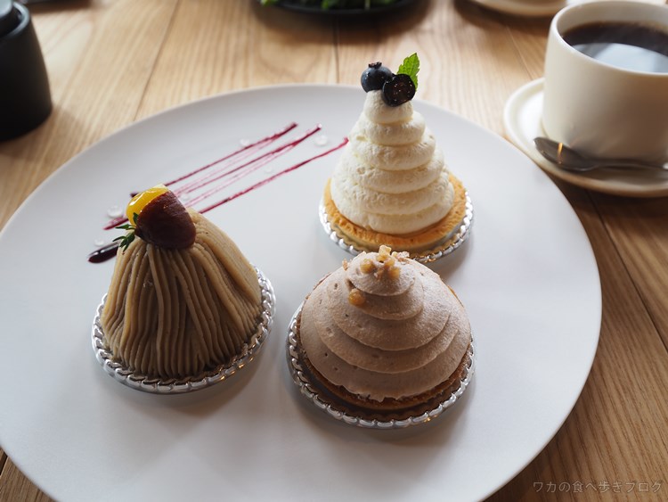3つのモンブランと、珈琲2つ。 シェア用のセットですね(`・ω・´)
