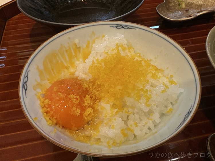 ご飯のおかわりは、カラスミ玉子かけご飯に><b 贅沢