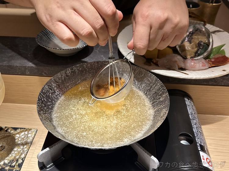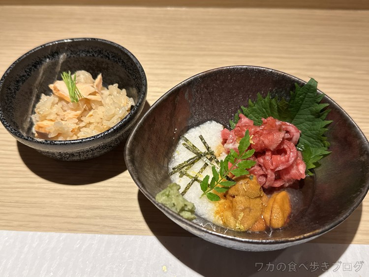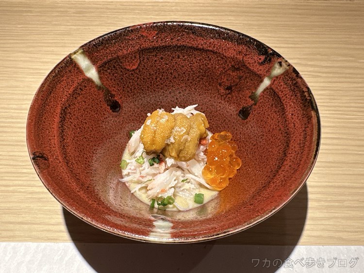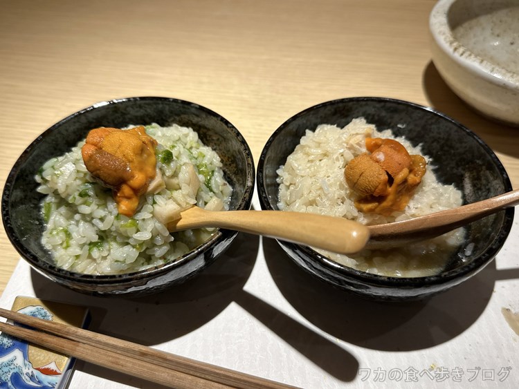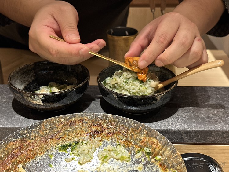 とはいえ、海老の頭は見た目だけ、右上の雲丹は溶かす用