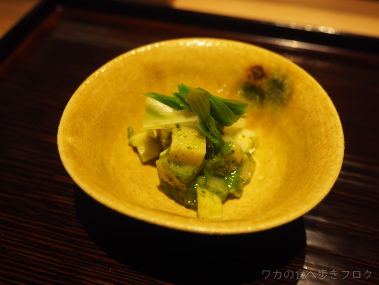 青竹の、酢味噌と麩ふんわりやわらか、鯛の卵サラッと旨みが広がる~♪