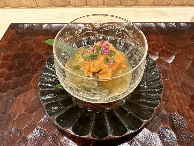 1.熊本の赤茄子、うにのせ、お野菜のジュレ