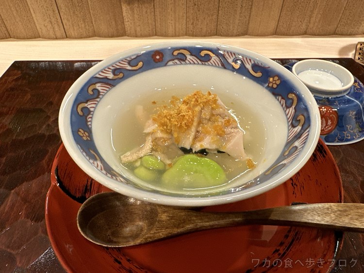 3.椀物 あずきます、枝豆のしんじょう、ボウフウ(野菜)