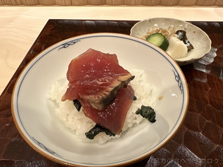 〆はカツオ丼、玉子かけご飯、蛤のおじや から選べます。