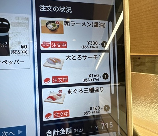 朝ラーと寿司少し注文