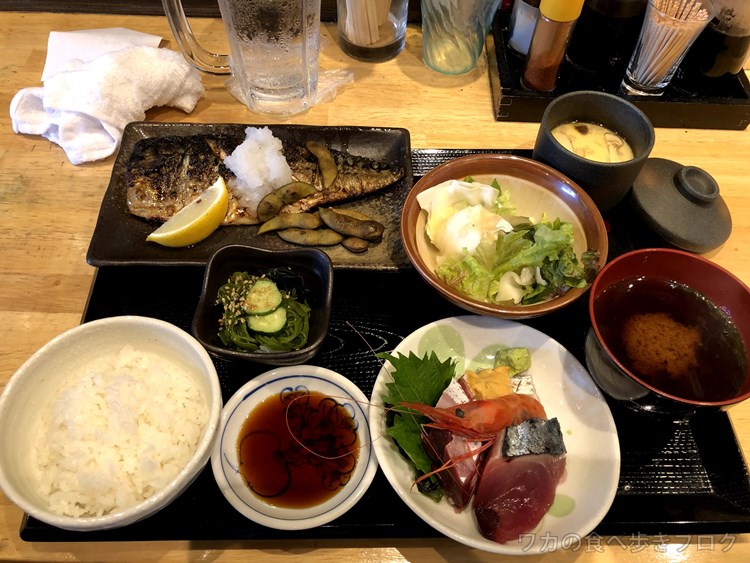 魚系な気分だったので、塩サバ&刺身の定食にしました。