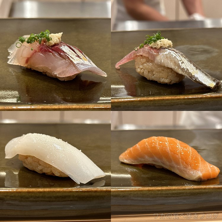 イカは酢橘と塩で、サーモン大きくカットされてて食べ応え(・∀・)