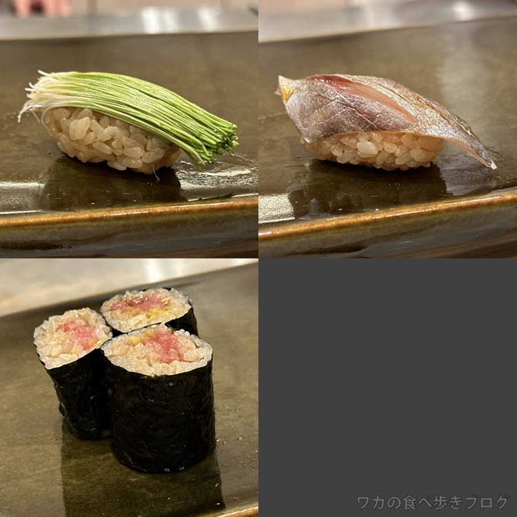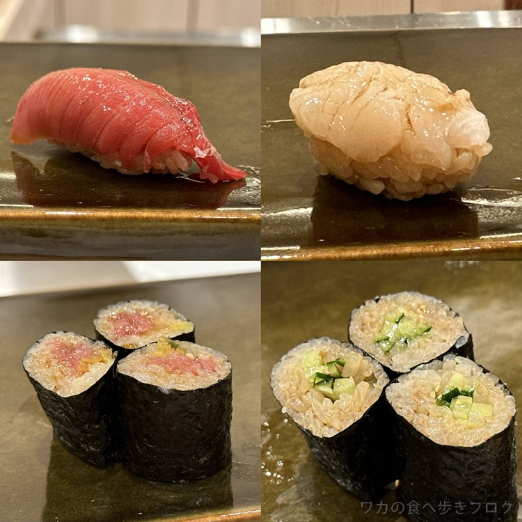 中トロ700円 ほたて350円 トロたく900円(写真はシェアした半分)カッパ400円