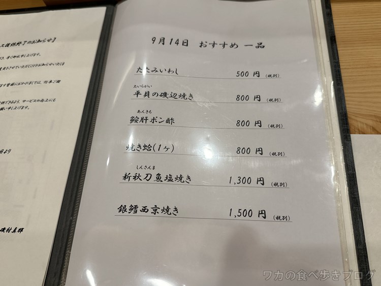 鯵250円 鰯250円 イカ300円 サーモン350円