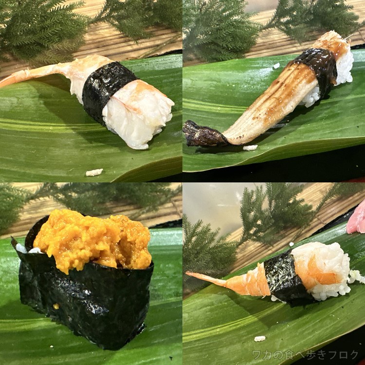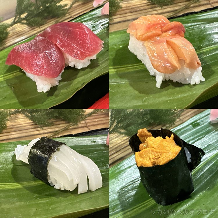 マグロ、海老、雲丹、穴子、イカ、赤貝