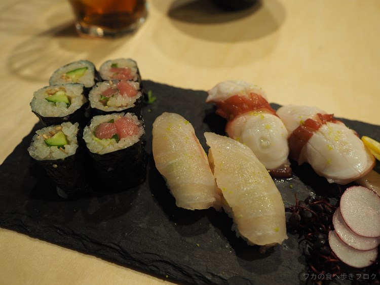お寿司は一貫一貫、寝かしてあったり仕事してある感じ(・∀・)