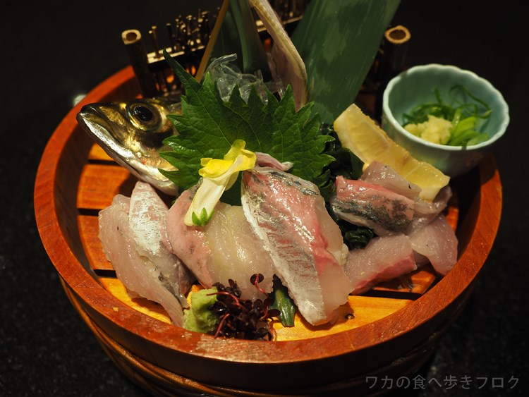 泳がし鯵一匹お造り(ハーフ&ハーフ)1012円
