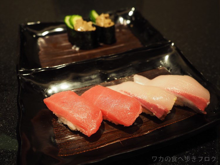本マグロ396円、極上ハマチ352円、蟹味噌198円