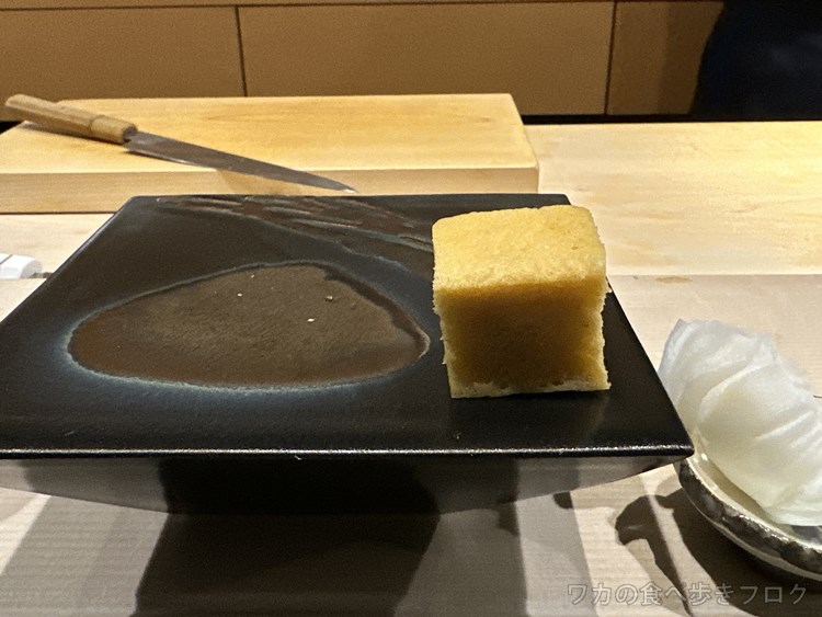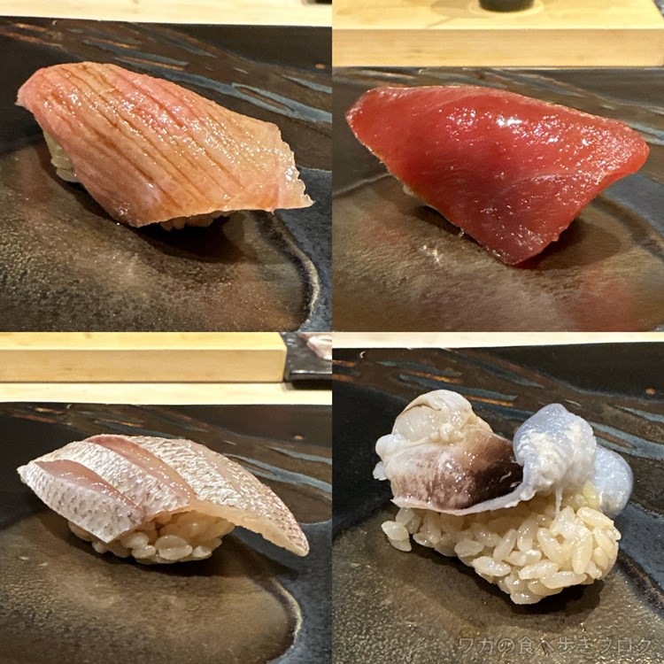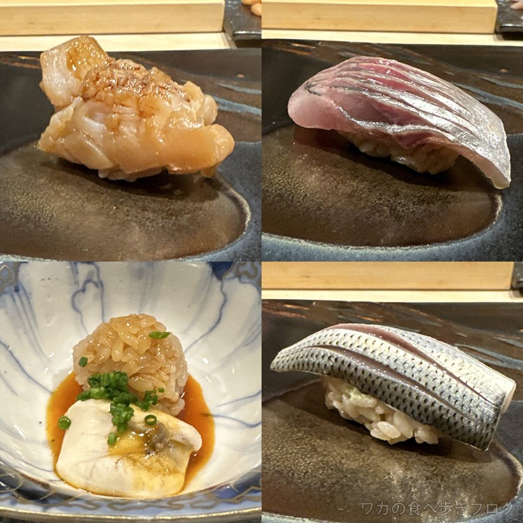 ふぐの白子のトリュフのTKG 握り、こはだ
