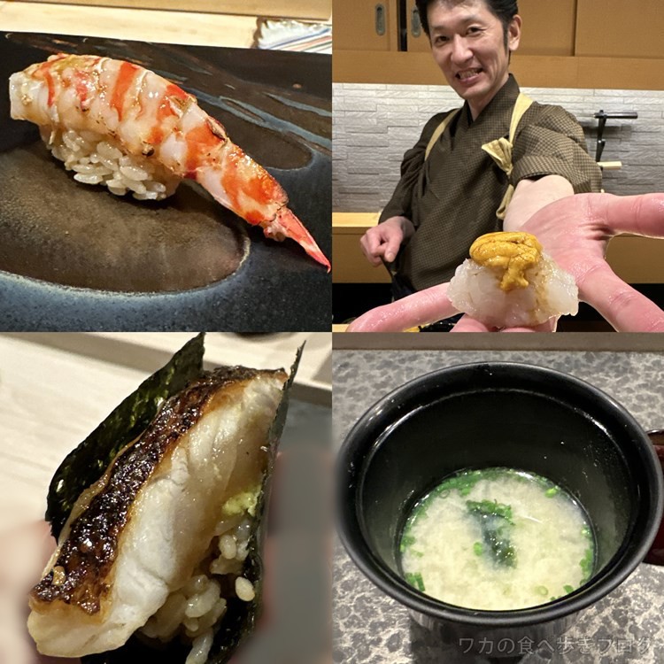 握り、くるま海老(追加) 白海老と雲丹の握り のどぐろの磯部巻き