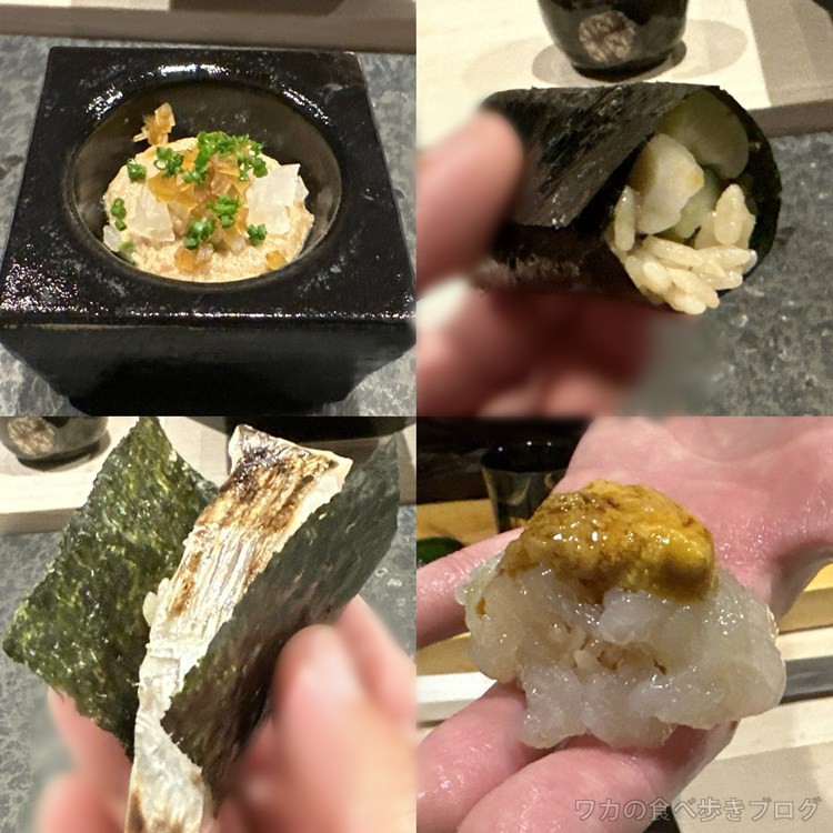 あん肝&奈良漬&べったら漬け ミルキュウ巻き 太刀魚 白エビと雲丹