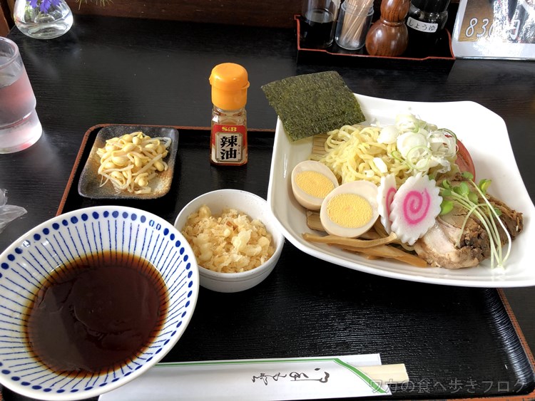 つけ汁はごま油が効いてるのかな?香ばしい香りであっさりでも美味し♪