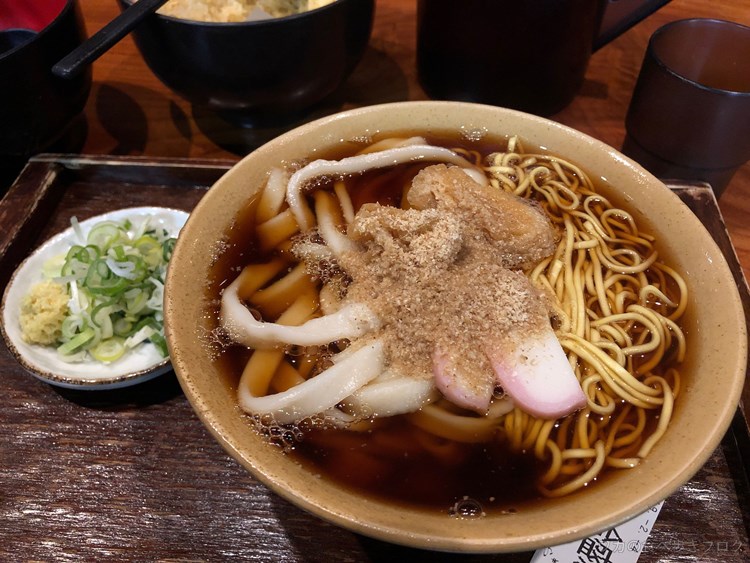 合盛かけ、うどんは太く柔らかめ、中華麺はシコッと食感が良い感じ