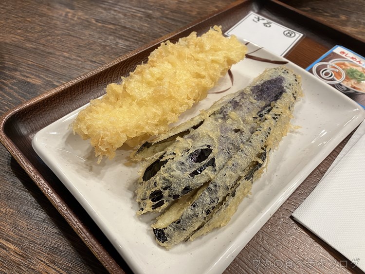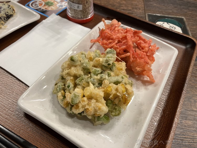 あと、茄子天、ちくわ天(紅生姜)、枝豆コーン、イカ天