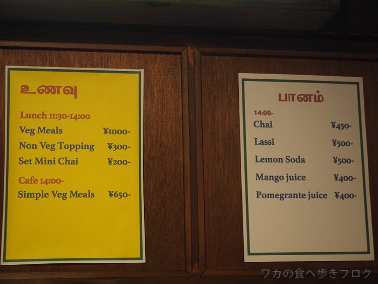 夜営業ではミールス無くて、カレーやサンドとかおつまみ系とドリンクとか