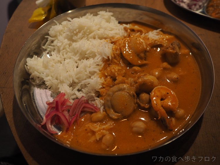 パキスタン風ヒヨコ豆と海老とホタテのカレー900円