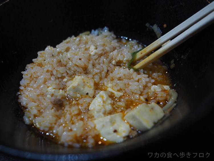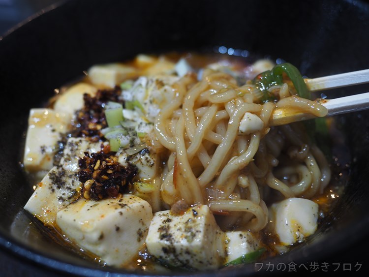一般的な麻婆麺より汁が少なく、麻婆が薄まりにくく、よく絡みます♪